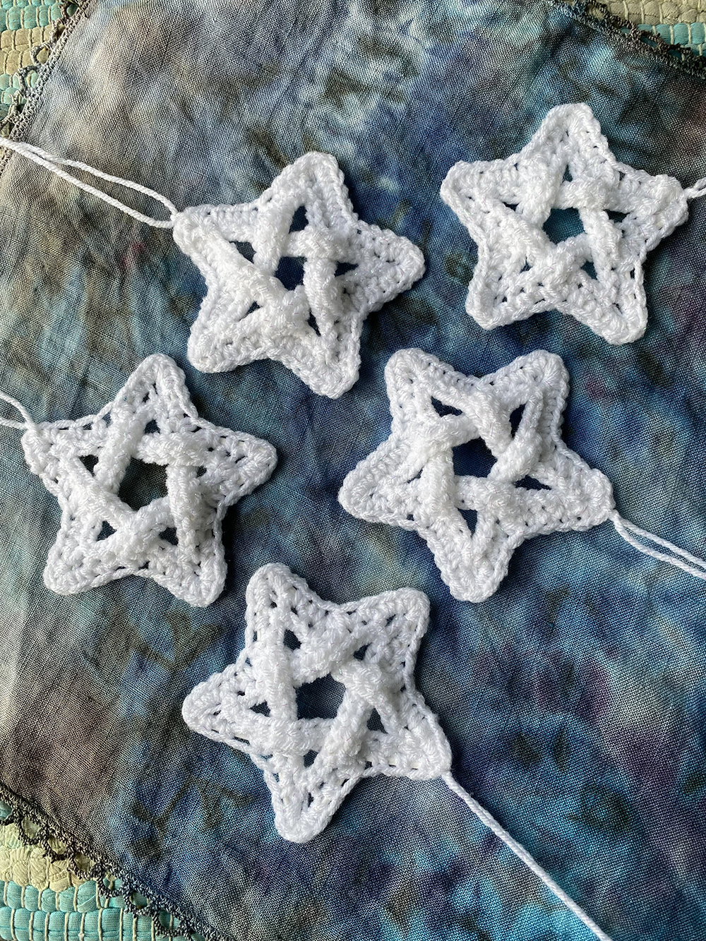 Being a geometer, I am fascinated by shapes – the pentagram, or five-pointed star, being one of my absolute faves. If I can add in a weave, then I am beyond thrilled. The centre forms a pentagon, which allows for further nesting pentagrams.